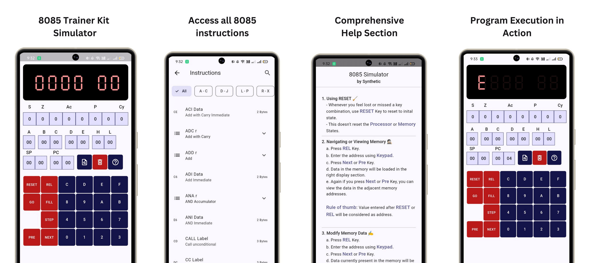 Master the fundamentals of microprocessor programming with the 8085 Trainer Kit Simulator! Designed for students, educators, and enthusiasts, this app simulates the popular Intel 8085 microprocessor, allowing you to write, test, and execute assembly language programs right from your mobile device.